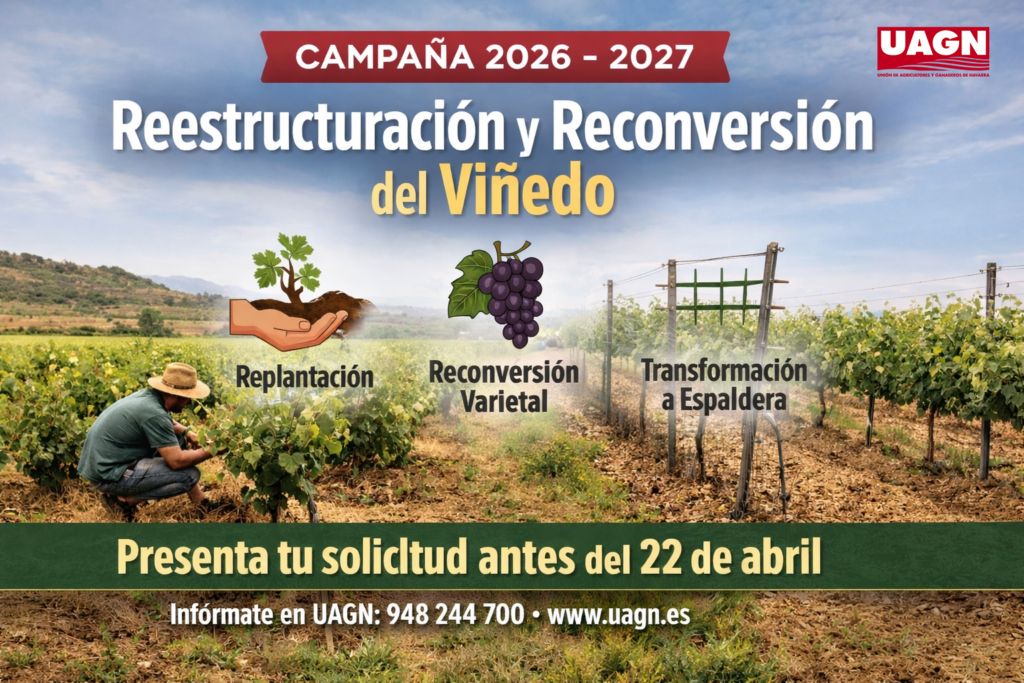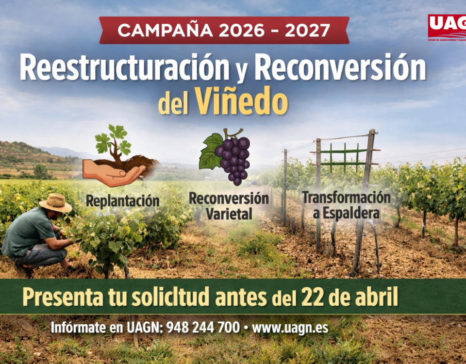 UAGN gestionará solicitudes individuales y colectivas hasta el 22 de abril para acceder a ayudas que incluyen replantación, reconversión varietal y transformación a espaldera.