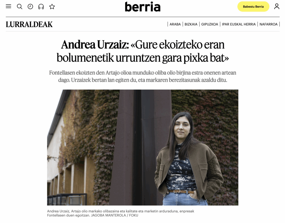 Berria (en euskera) se interesaba por el proceso de producción de este trujal de Fontellas, considerado uno de los mejores de oliva virgen extra.