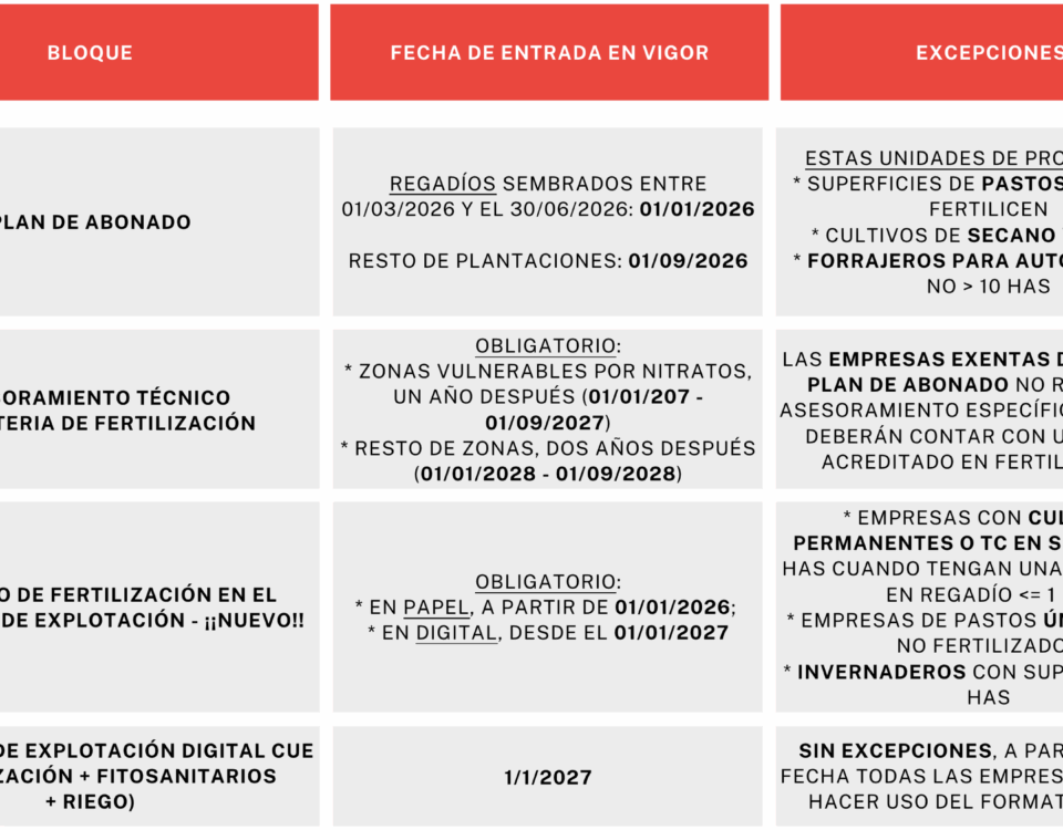 A partir de 2026, se exige un plan de abonado; desde 2027, se solicitará el CUE – Cuaderno de explotación digital; y en 2027 o 2028, será necesario asesoramiento técnico en materia de fertilización.