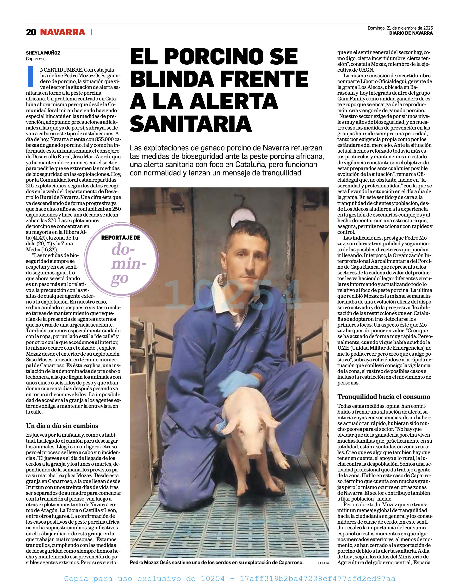 - Diario de Navarra: ‘El porcino navarro se blinda frente a la alerta sanitaria’
