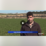 Representantes del Ministerio de Agricultura, Pesca y Alimentación y de la Delegación del Gobierno visitan esta semana las parcelas de esta pareja de agricultores, en Cascante, como ejemplo de formación práctica para jóvenes del sector y apoyo al relevo generacional.