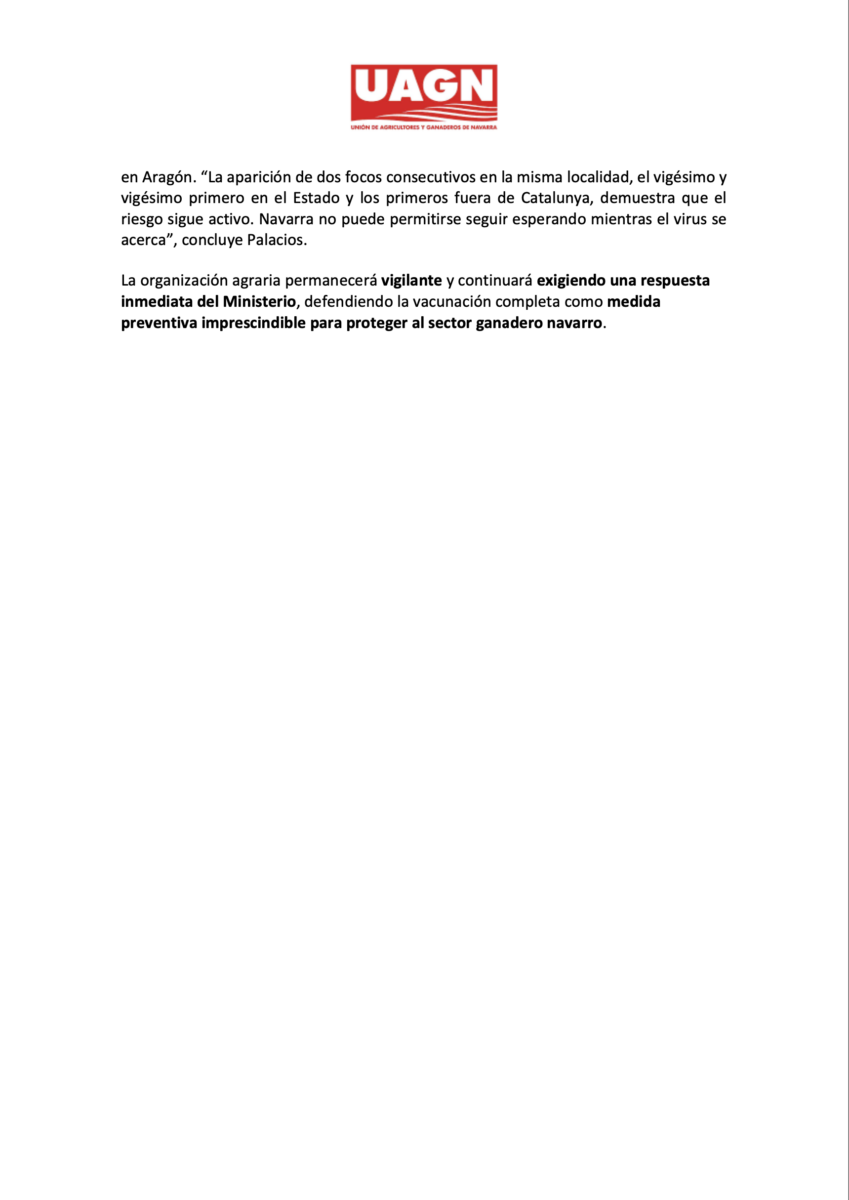 - Diario de Navarra: ‘La dermatosis se extiende: UAGN reclama la vacunación urgente de "todo" el vacuno en Navarra’