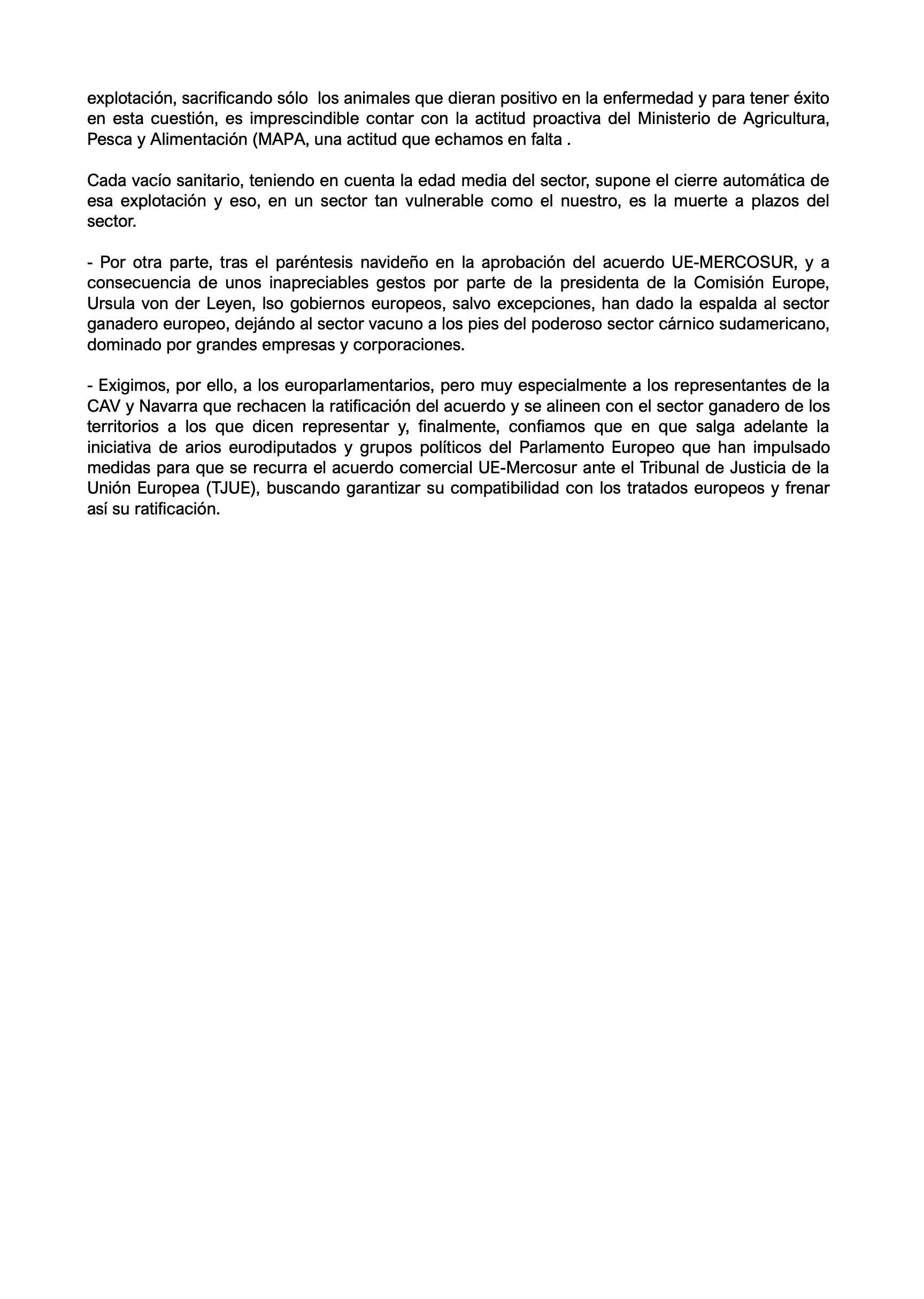 - Onda Vasca (noticia web): El primer sector se moviliza contra el acuerdo con Mercosur y el protocolo frente a la dermatosis