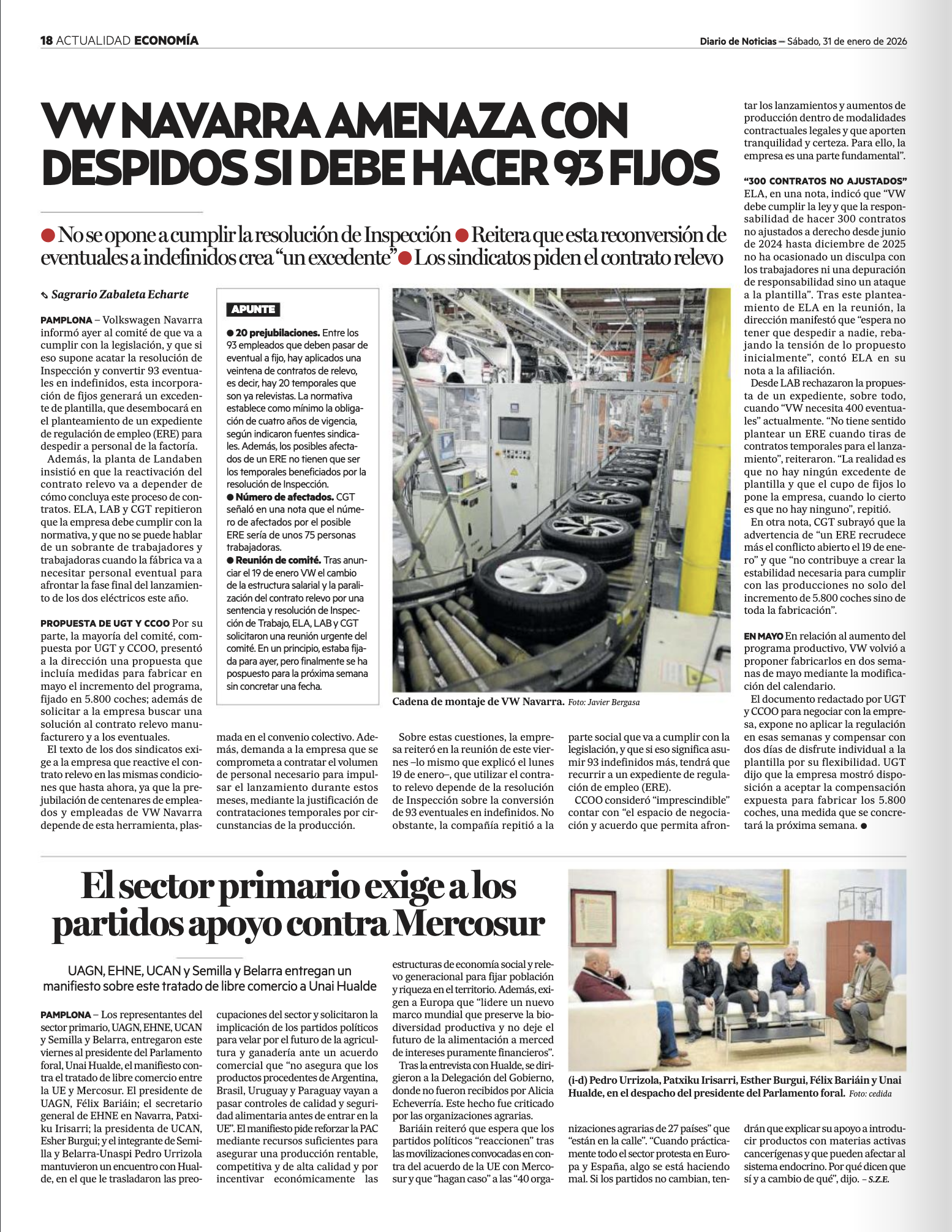 - Diario de Noticias: ‘El agro navarro espera que los partidos políticos "reaccionen" ante las movilizaciones contra el acuerdo de Mercosur’