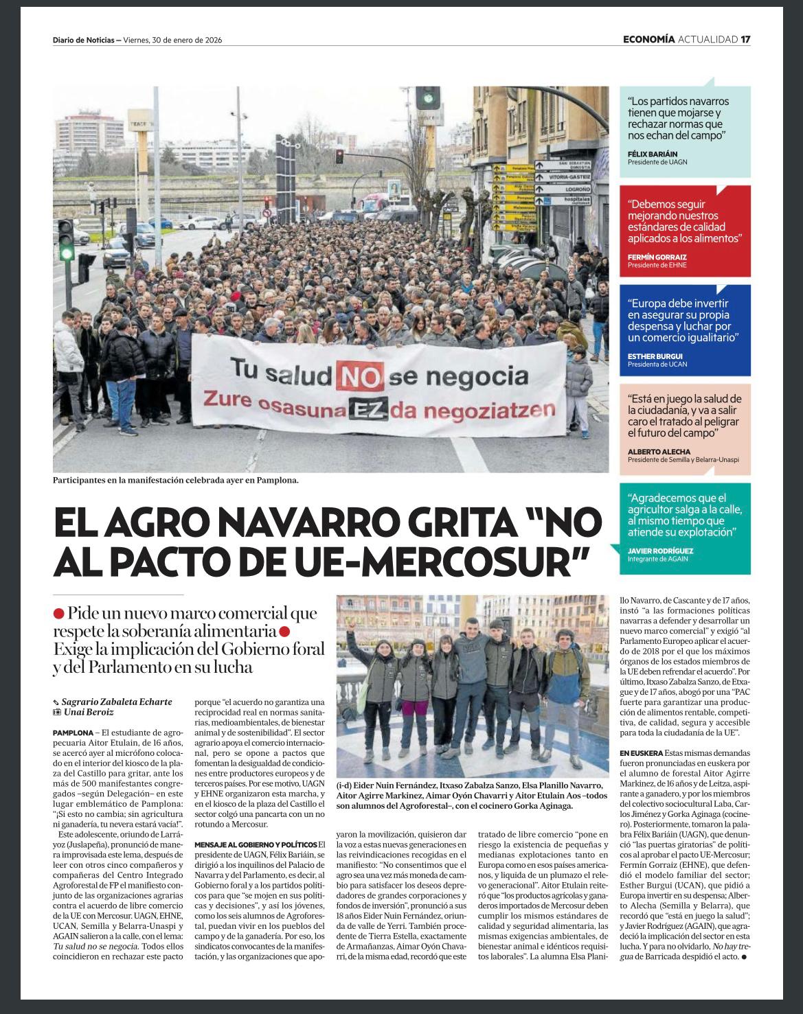 - Diario de Noticias: ‘El agro navarro reivindica su papel en la salud alimentaria contra Mercosur’
