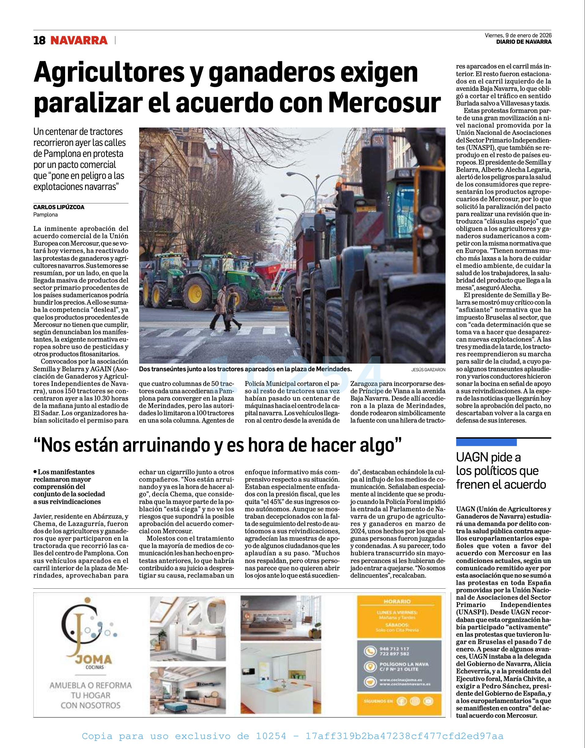 - Navarra.com: ‘UAGN aprieta por Mercosur y estudia denunciar a los europarlamentarios españoles que voten a favor’
