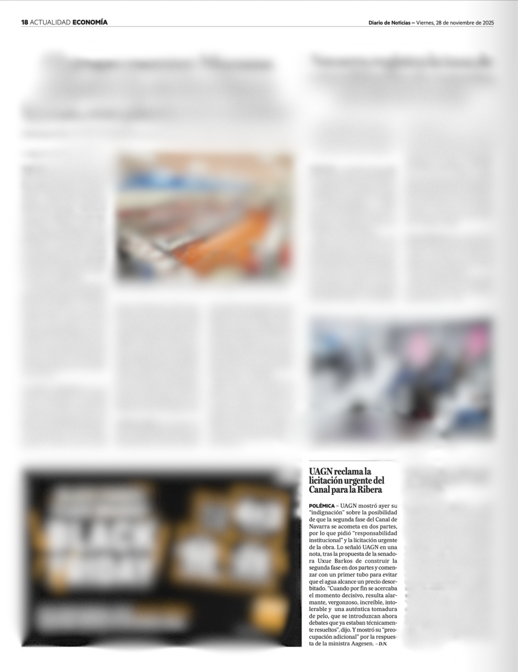 • Navarra Información: ‘UAGN considera «una tomadura de pelo» y exige responsabilidades con la II fase del Canal de Navarra’