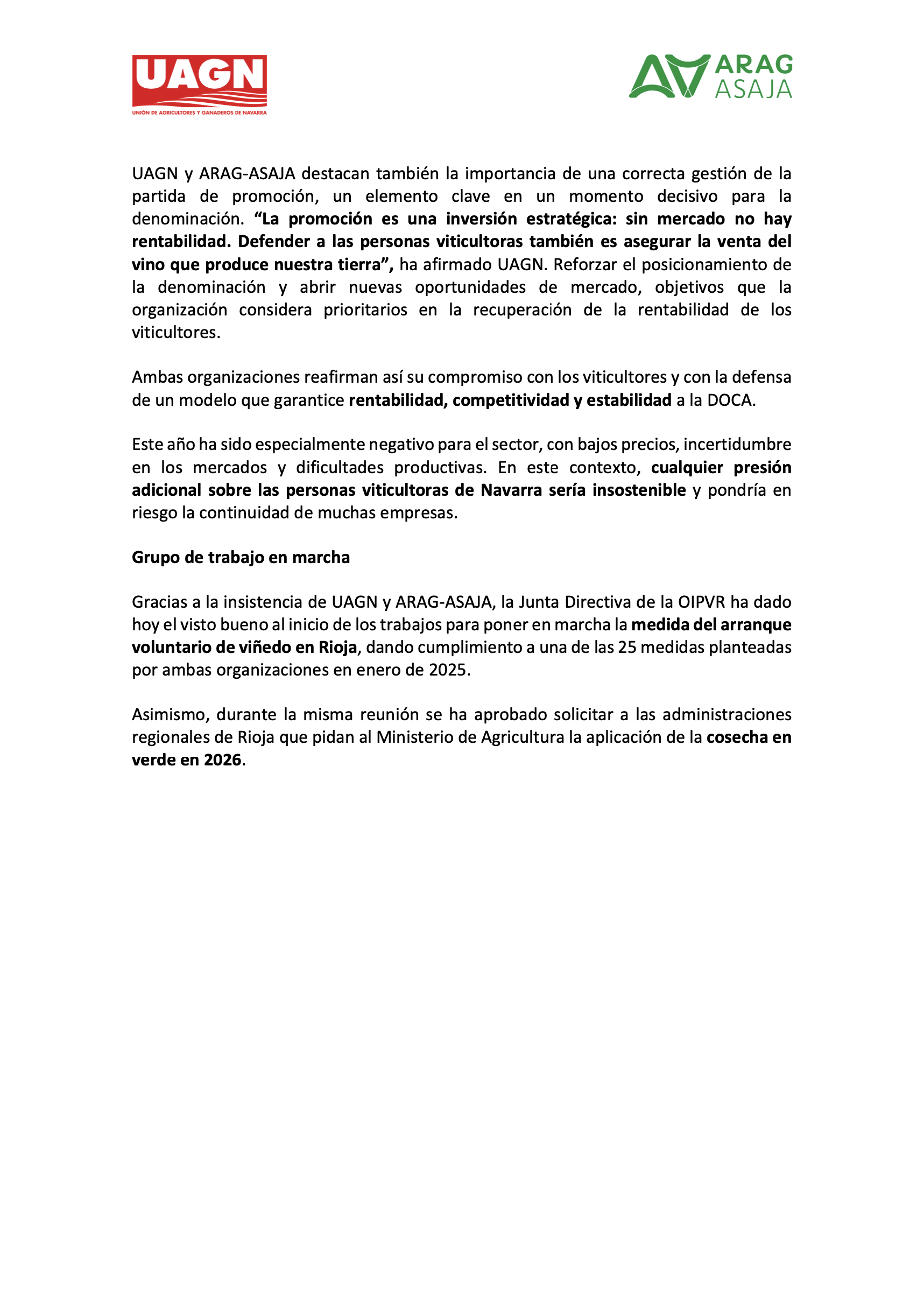 - UAGN: 'UAGN y ARAG-ASAJA respaldan los presupuestos del consejo para reducir la aportación de las personas viticultoras en 2026'
