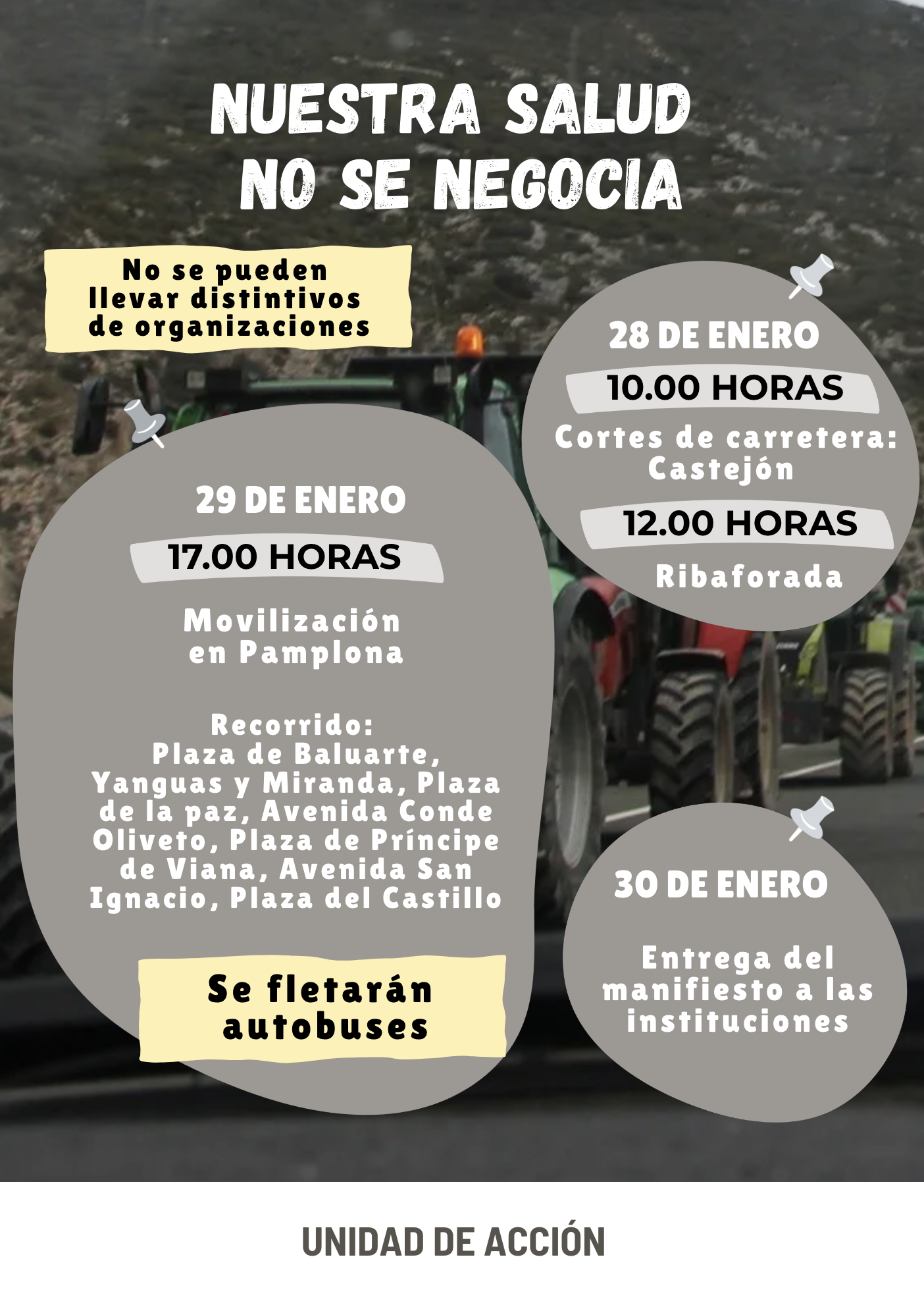 Del 28 al 30 de enero, se llevarán a cabo distintas acciones de protesta y movilización en diversos puntos de Navarra.