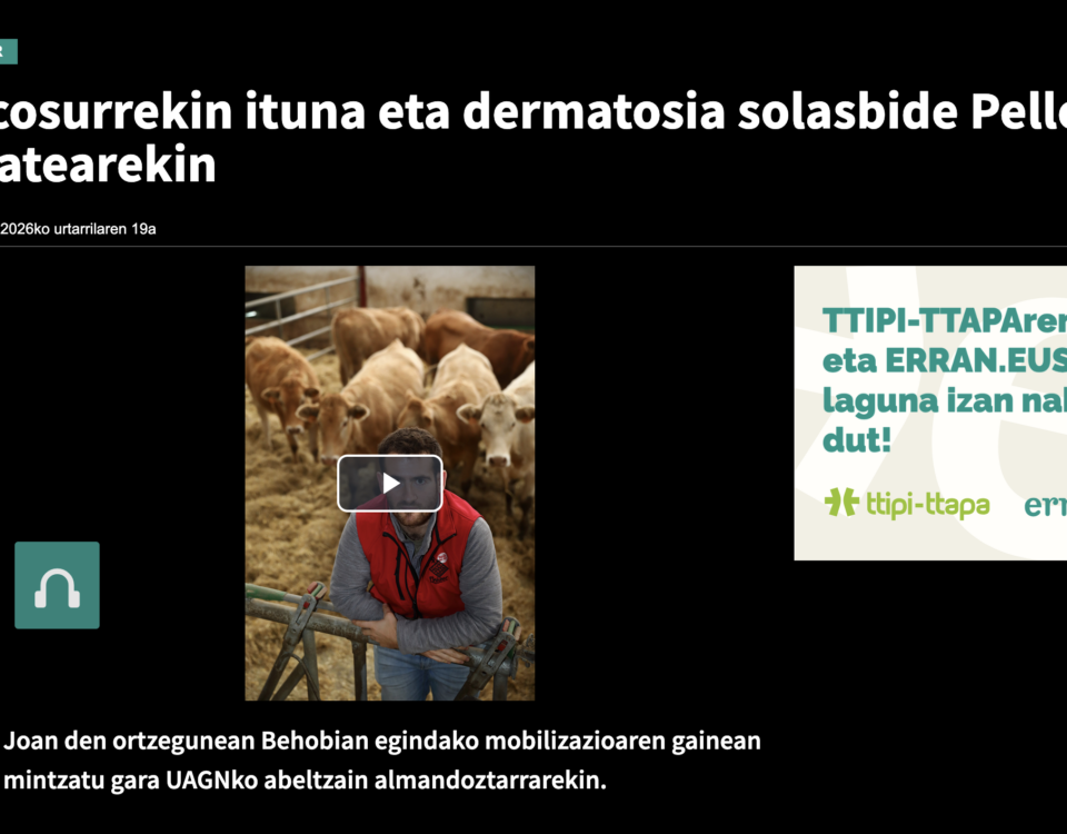 Este 15 de enero, la organización agraria llenaba un autobús a Irún, donde junto a ENBA y EHNE Confederación, el sector denunciaba la gestión de la DNC y la falta de reciprocidad en los acuerdos comerciales europeos. A continuación, la lista de medios de comunicación que se han hecho eco […]