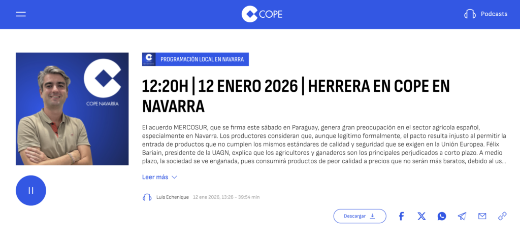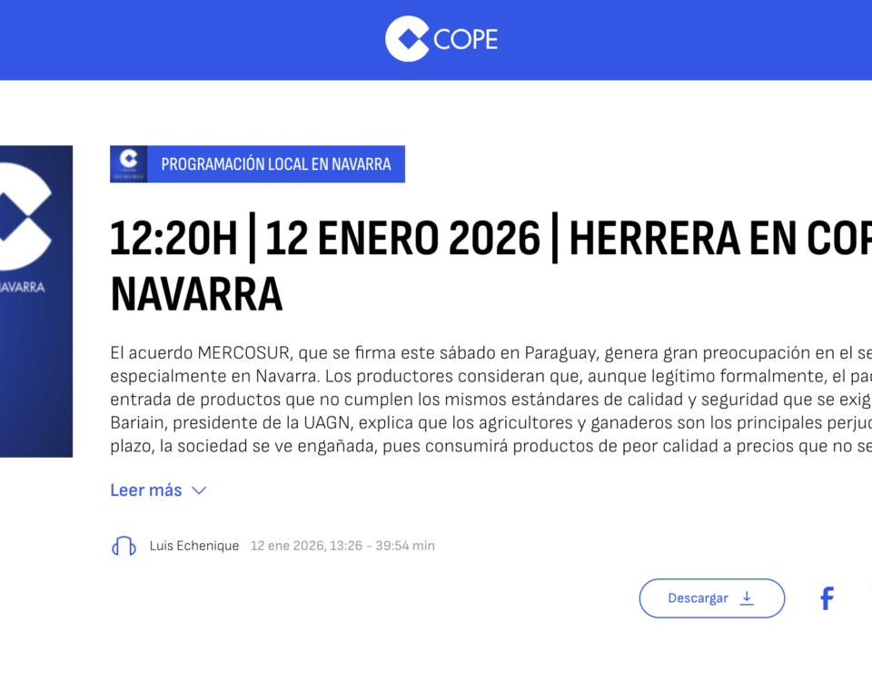 Una decisión que pone en riesgo la calidad y la seguridad alimentaria y amenaza la viabilidad del modelo agrario europeo y navarro. A continuación, la lista de medios de comunicación que se han hecho eco de ello: